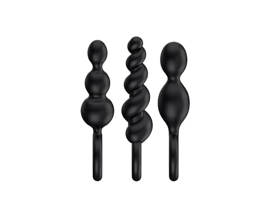 Offering three distinct shapes to backdoor pleasure seekers, this trio of silky silicone plugs includes a sexy swirly screw, a triple beaded blast of stimulation and a double barreled probe for maximum stretch. Perfect for just about any level of anal experience, the swirl and triple versions both start off petite and forgiving before swelling to their largest points, while the double provides a more dramatic ‘pop’ right off the bat.