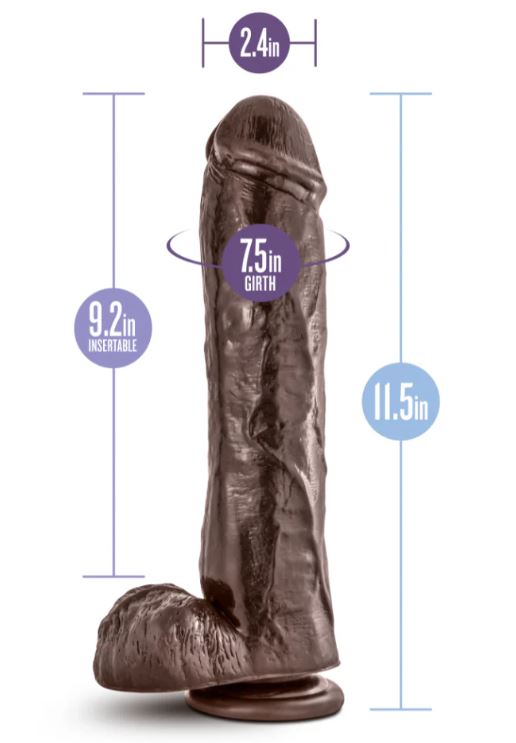 The doctor is in! Look out for Mr Savage, the chocolate 11.5 Inch Realistic Cock! Measuring 9.25 insertable inches with a girth of 2.4 inches, this is a tool for the experienced! Stick him to any smooth surface with his sturdy suction cup for a hands-free challenge. Or, strap him into your harness for intense partner play. He has all the sculpted veins, balls, and texture of a real cock. The Blush Novelties Mr. Savage 11.5 Inch Cock