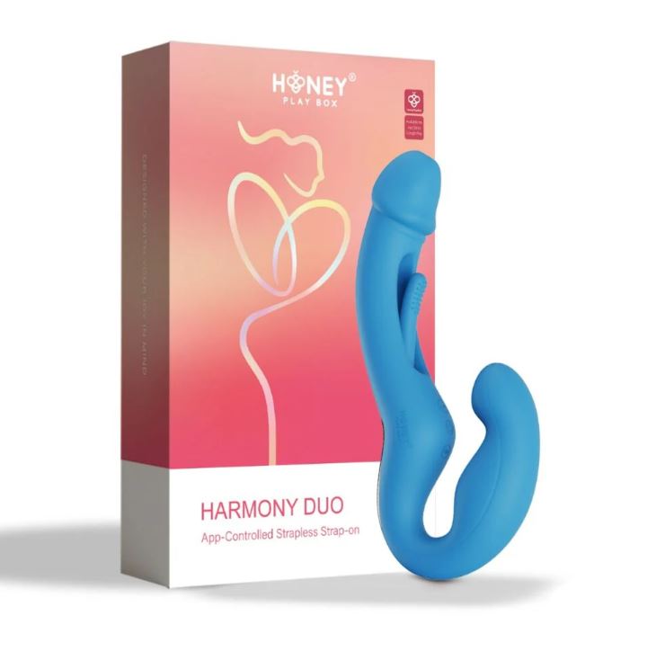 Share the crave! Harmony Duo features two kinds of stimulation at once. It’s shorter, contoured shaft hits the bullseye: the wearer’s G-Spot. At the same time, the longer dildo end uses its “Kinky Finger” to tap against your partner’s hot zones with incredible finger massages, getting both of you across the mind-blowing, orgasmic finish line!