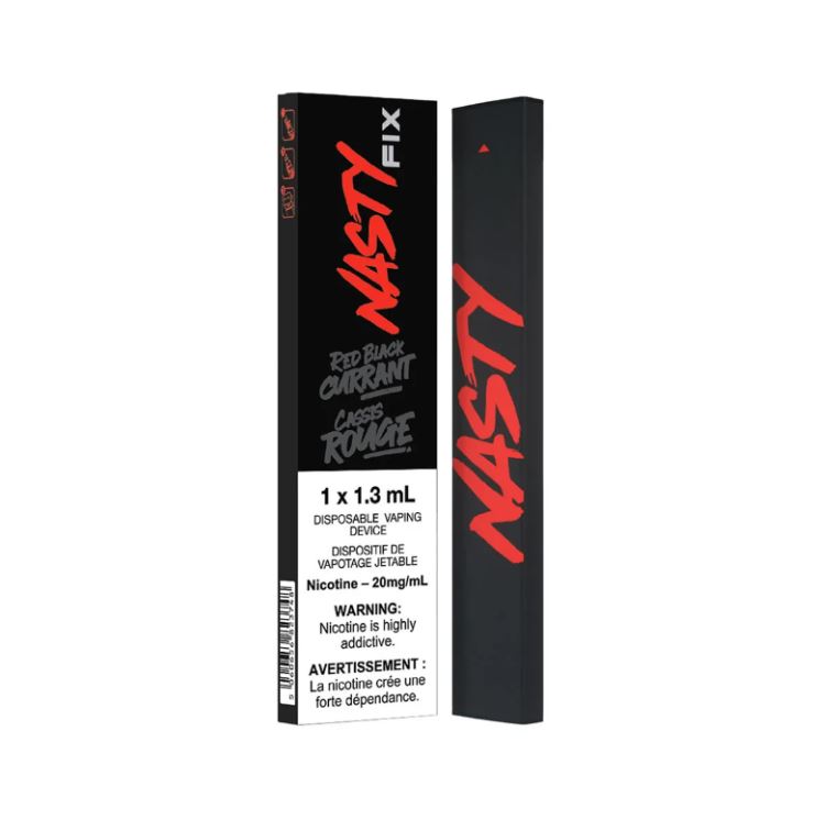 Red Blackcurrant Nasty Fix Disposable Vape are pre-filled 1.3mL vapes infused with the unique tartness of black currant with a light touch of soft cotton candy. Available in 20mg lasting up to 300 delicious puffs.
