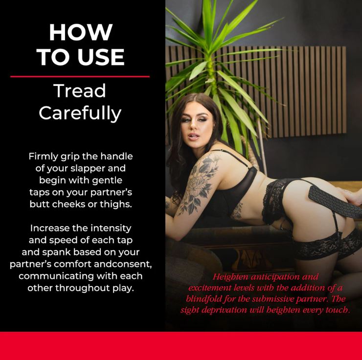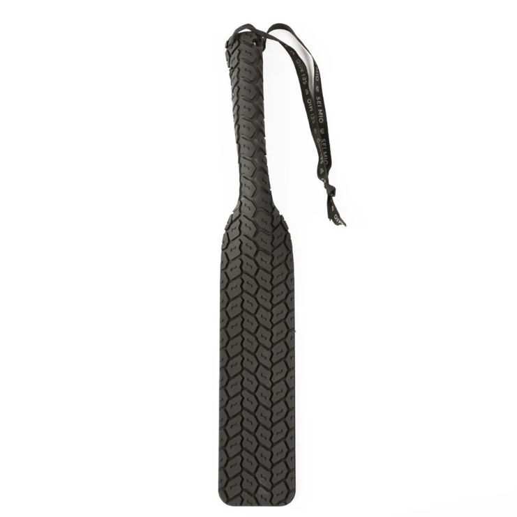 Discover an exciting twist on impact play with the Sei Mio Tread Carefully Tyre Textured Spanking Paddle, featuring a unique tire tread texture that delivers intense, satisfying sensations. Every swing leaves a distinct imprint, creating a thrilling visual treat on the skin that amplifies the experience. The tread pattern on the handle provides a secure, slip-free grip for full control, even during the most passionate play. Made from premium silicone, this paddle is not only durable but also incredibly easy to clean and dry, making it a perfect blend of style, sensation, and practicality.